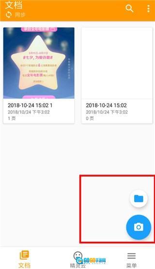 同时安装精灵扫描,可点击主页右下角的按钮进行现场拍摄,也能从手机本地相册选取照片。
