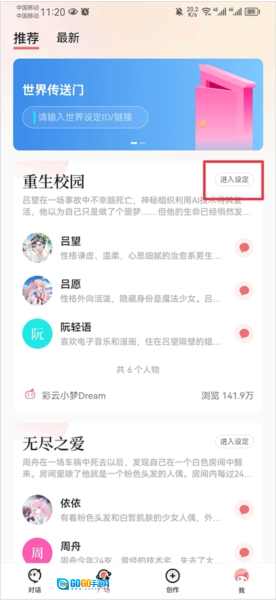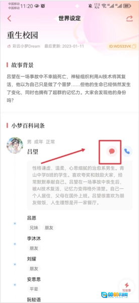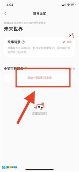 进入创作界面后,点击顶部的横幅即可开启世界设定功能。在这里,你能够创建普通词条与人物词条,还能设定人物之间的关系。此外,你也可以补充一段背景故事,以便让小梦更深入地了解你构建的世界。