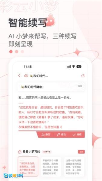 在创作页面输入一段文字后,点击「AI小梦来帮写」,小梦会马上给出三条不同的故事走向。小梦拥有多种续写风格,V2版专业模型也等着你来体验哦。
