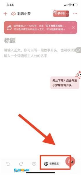 首先,打开彩云小梦,点击下方的【世界设定】选项。这个功能主要用于构建文章的世界观与角色背景,能让小梦基于这些设定来开展文章续写工作。