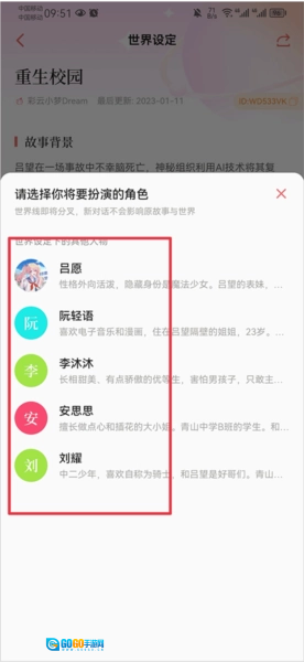 接着,设置300字以内的故事背景,点击保存;