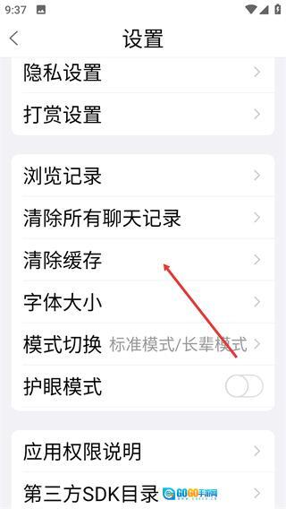 4、回到【设置】页面,可通过操作【清除缓存】来释放软件占用的存储空间,也能对【浏览记录】-【聊天记录】等数据类功能进行管理。