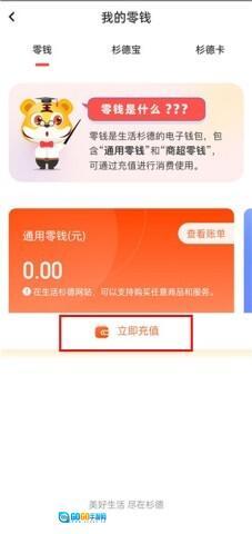 5、最后再次点击“零钱”选项,选择“立即充值”按钮,就可以顺利将资金转入衫德宝账户,整个操作流程十分简便!