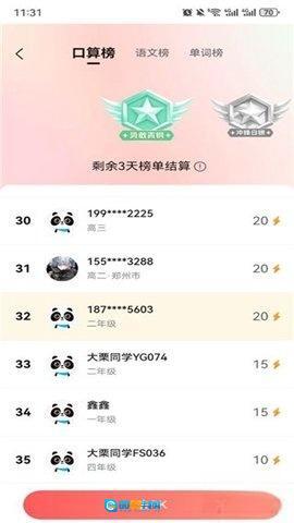 5、你可以查看当前年级的PK积分排行榜。
