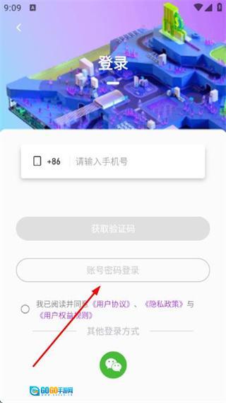 2、在登录页面,点击“账号密码登录”选项,即可进入对应的账号密码登录页面。