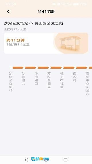 2、点击查看你感兴趣的线路,系统会立即展示所有停靠站点,同时你还能了解到车辆的到站时间。