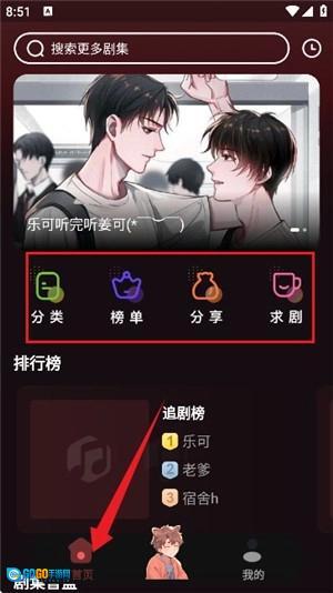 3、进入软件首页后,你可以浏览分类、查看榜单,还能实时分享内容,也可以直接搜索自己喜爱的作品。