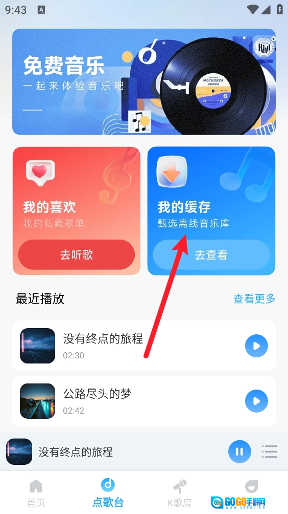 5、完成后在点歌台页面点击"我的缓存"
