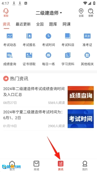 3、在“资讯”栏目中,可以查看当前你的专业热门资讯,以及考试的动态时间信息;