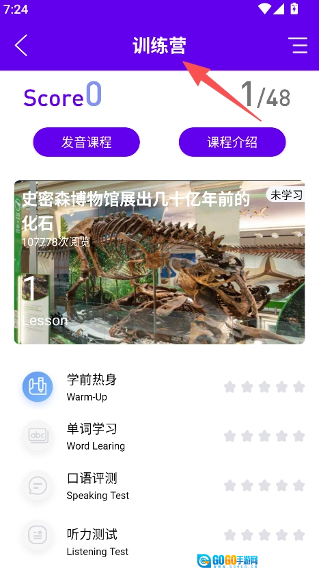 进入训练营,参与发音课程、单词学习等课程。