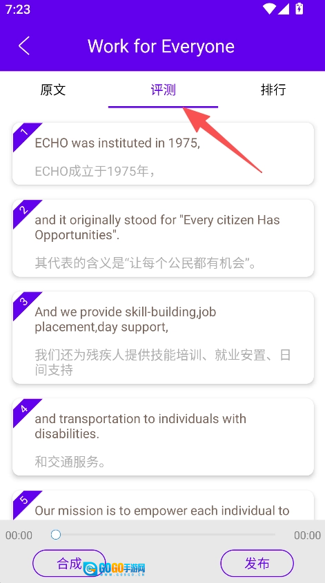 选择视频进入后,点击评测板块练习口语。