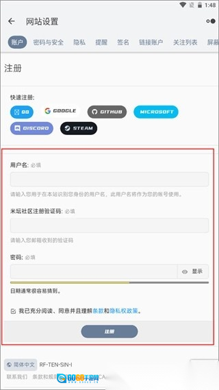 4.按照邮箱中收到的验证码进行复制粘贴操作,接着填写用户名与密码,最后点击下方的注册按钮即可完成操作。
