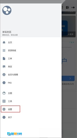 1.启动米坛工具应用,点击左上角的三条横线图标进入个人中心页面,接着找到设置选项并点击。