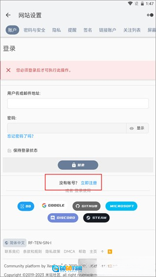 2.此时页面会跳转至网站设置界面,新用户需先完成注册操作,请点击下方的“立即注册”按钮。