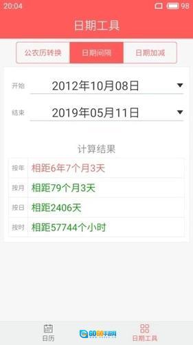 5、配备日期间隔计算工具,能便捷算出两个日期之间相隔的年数、月数与天数,还可用于精准计算个人的实际年龄。