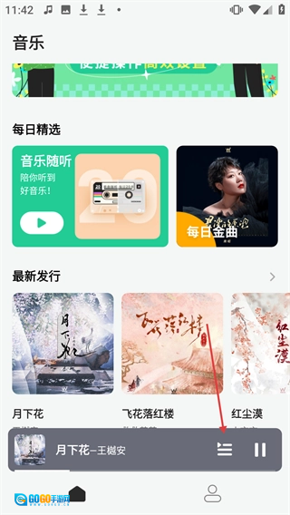 在首页,点击音乐播放栏,进入歌曲列表页面。