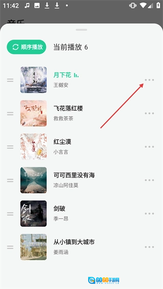 在歌曲列表里,点击【月下花】右边的三点图标,会弹出操作菜单。