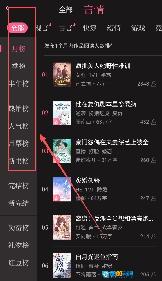 书城里的各类排行榜单相当实用,月度榜单和季度榜单分别呈现不同时间周期内的高人气作品,比如《白月光退位指南》和《离谱反派全员想和漂亮炮》都是最近比较热门的作品。