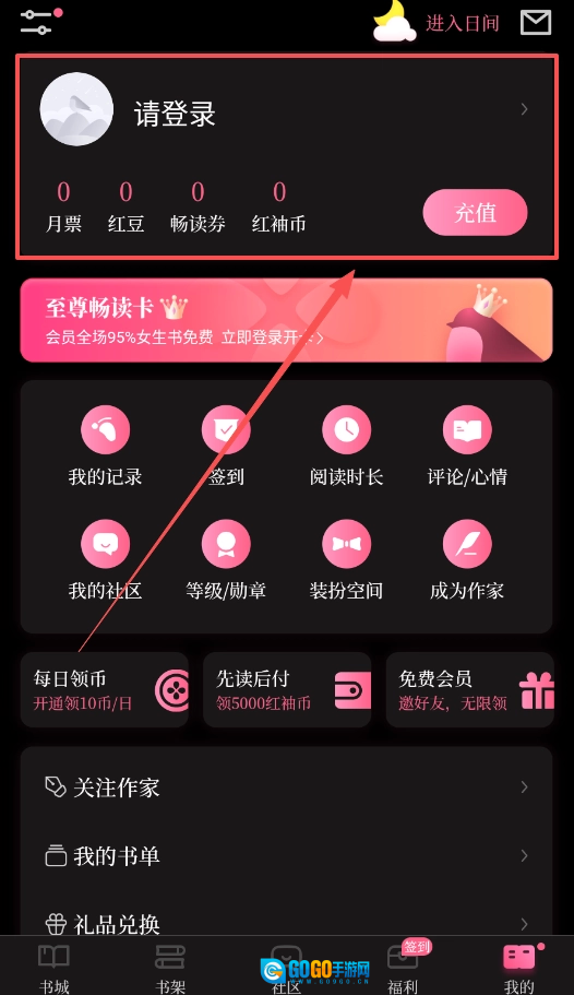 首先得完成账号登录,登录之后在“我的”页面能进行签到、查看阅读记录以及领取勋章,随着这些积累越来越多,看书就会变得很划算。