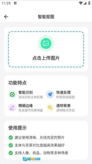 2、点击上传图片,即可开启智能抠图操作,轻松获取所需内容。