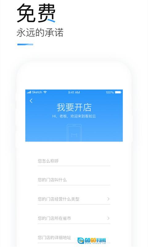 1、打开客如云,输入门店资料进行注册。