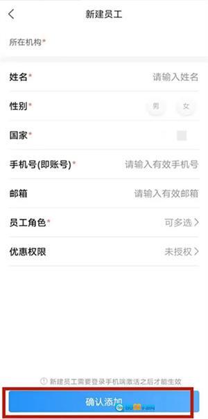 6、员工管理页面,点击添加员工。