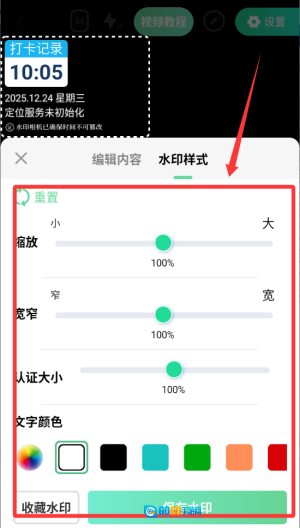 4、随后进入水印样式编辑环节,调整好大小规格与文字颜色等参数后,保存该水印。