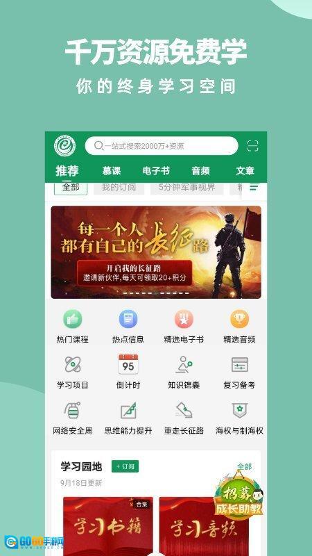 这是一款汇聚千万免费资源的考证学习软件,不仅支持手动搜索课程,还具备智能语音搜索功能——用户可通过语音输入课程相关信息来查找所需资源;平台内教学视频内容丰富多元,涵盖军事、科技、哲学、文学历史等多个领域的课程,满足用户多样化的学习需求。