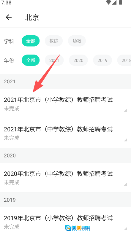 2、支持依据地区、学科、年份来筛选真题,选定对应的考试内容即可进入做题环节。
