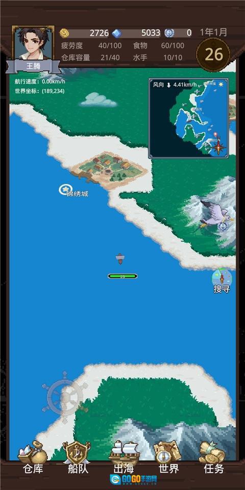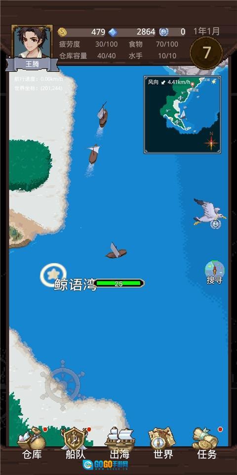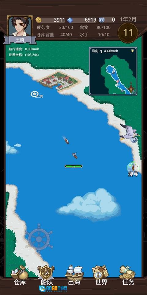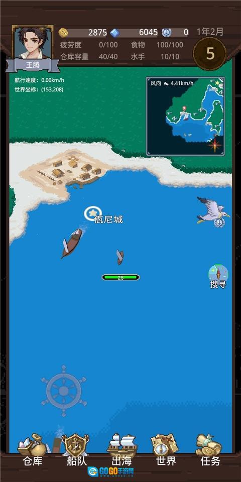 现在手头也攒下了些积蓄,是时候招募个伙伴了——主要是为了防范被海盗袭击丢了性命(对了,招募后记得去船队界面把伙伴安排上阵)。这样一来,对付那些小型海盗船基本就没问题了,但真遇上海盗船时,能绕开还是尽量绕开,毕竟能少些损失总是好的。