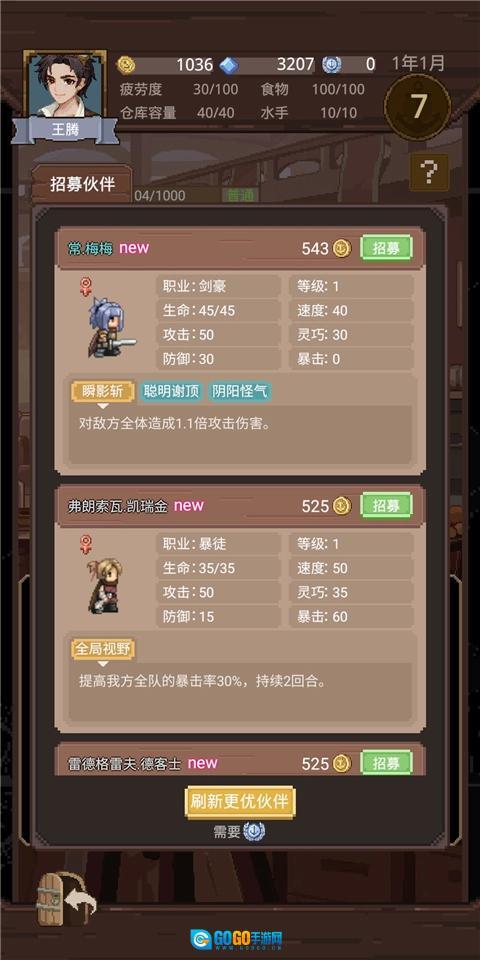 (注意:尽量招募词条多的伙伴)