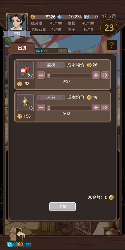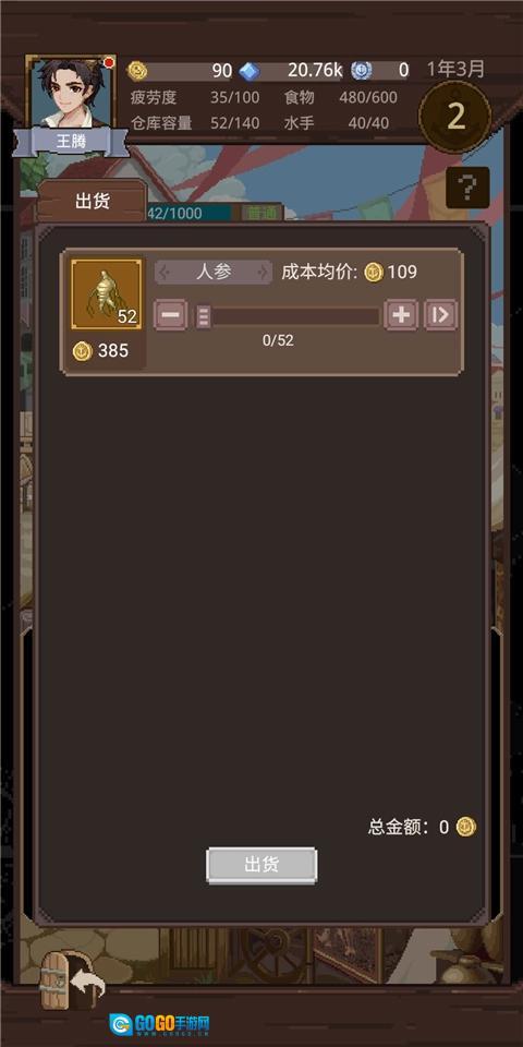 买完后直接出海,回到金城,卖掉人参,暴富!