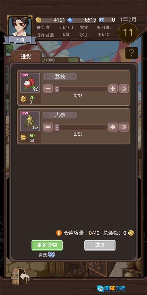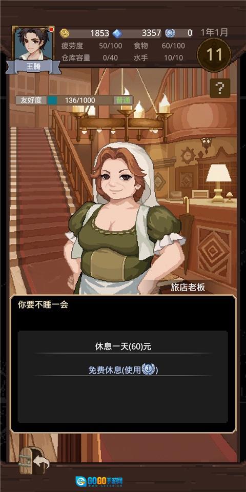然后去旅店休息一晚,能降低35点疲劳度。要是携带的商品在市场售卖会亏本,不妨先睡一觉;因为商品价格每天都不一样,这样做很可能会让商品价格上涨。
