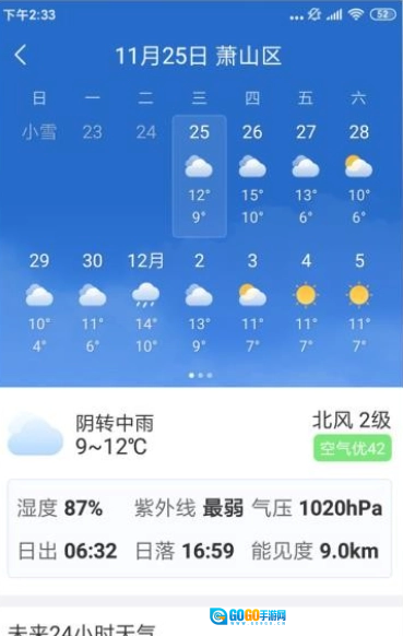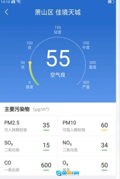 3、对空气质量进行实时监测,呈现PM2.5指数与空气污染情况,为健康出行提供保障。