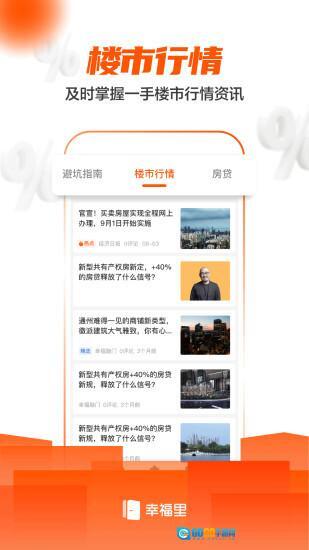 幸福里找房是一款专注于线上找房的生活服务平台。在这里,二手房、新房源等各类房产信息都能随时查看,海量真实房源信息可供查询,是一个更便捷好用的房屋交易平台。无论您是租房还是买房,都能找到更靠谱的房源,省去大部分繁琐流程,让您更容易找到心仪的房子。