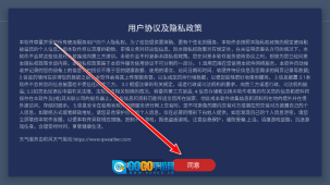 1、在电视上启动熊猫电视盒子,点击“同意”按钮来继续操作。