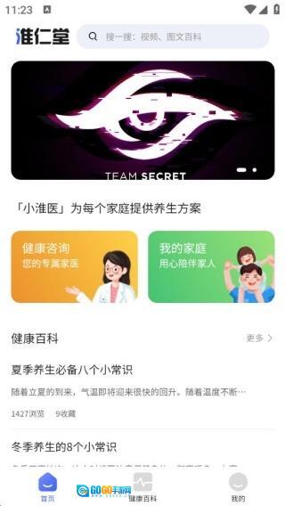 安装软件并进入后,平台首页设有健康咨询功能,同时还提供各类健康小百科供用户阅读。