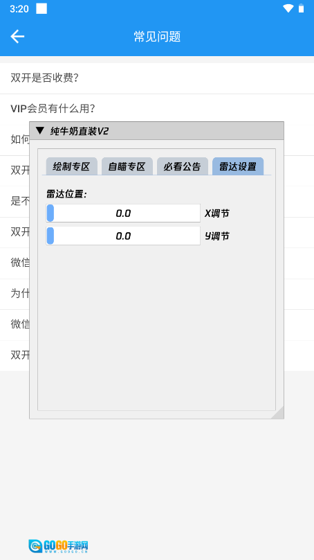 自瞄专区雷达的坐标定位在(X: 0.0, Y: 0.0),你可以通过调整X轴与Y轴的数值来让它实现精准定位。