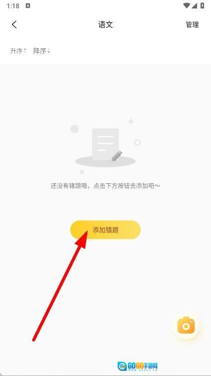 3、在语文错题本页面,找到并点击添加错题的按钮,即可进入添加错题的页面。