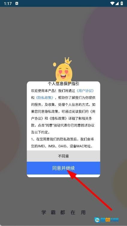 1、开启应用程序,待弹出提示窗口后,点击“同意并继续”按钮,即可进入主界面。