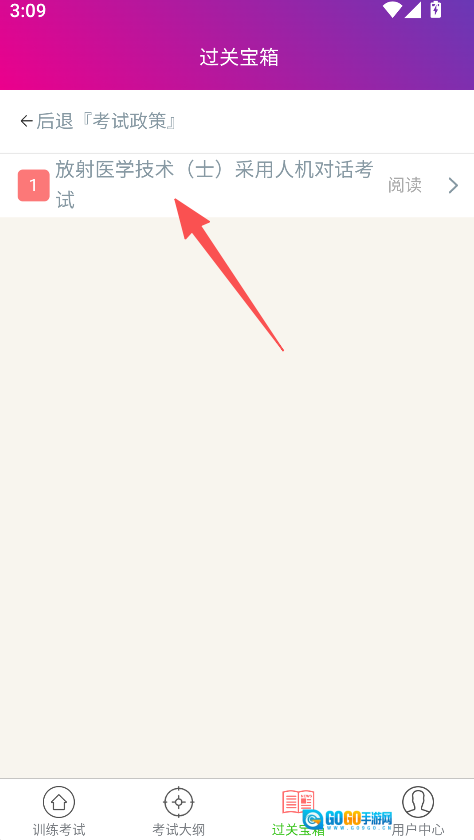 2、在过关宝箱页面选择考试政策,进入详情界面。