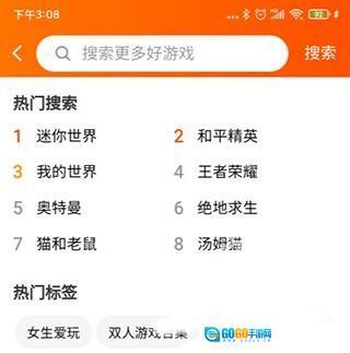 然后点击里面的搜索,我们可以直接搜索游戏,或者输入热门的标签;