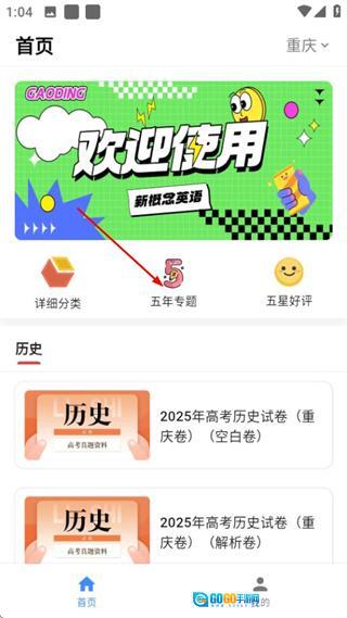 1、打开高考真题库首页后,找到并点击“五年专题”选项,即可进入专题分类页面。