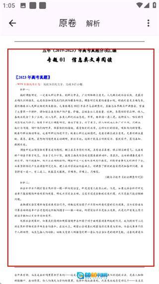 3、进入内容页面后,就能查看该专题所对应的高考试卷原文内容了。