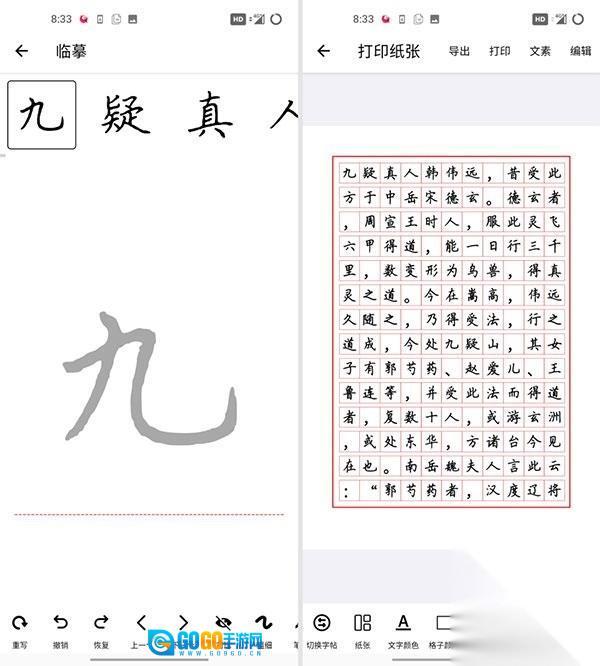 选好钟意的字体后,接下来就得琢磨怎么用App练字了。主要有两种方法:一种是直接在屏幕上临摹,另一种是打印出来当作字帖练习。