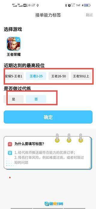 2、登录成功后,选择适合自己的接单标签。