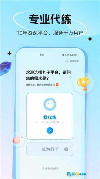 代练丸子是专注于代练服务的专业平台,这款软件支持多款经典热门游戏,像《王者荣耀》《和平精英》《原神》《英雄联盟》《QQ飞车》《穿越火线》等都在其中,覆盖了端游领域。代练丸子始终致力于为玩家提供高效且稳定的代练服务,助力他们快速提升游戏段位。