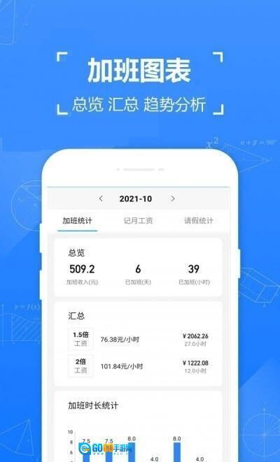 2. 会实时更新各类不同的图表,方便你统计自己的加班时长。