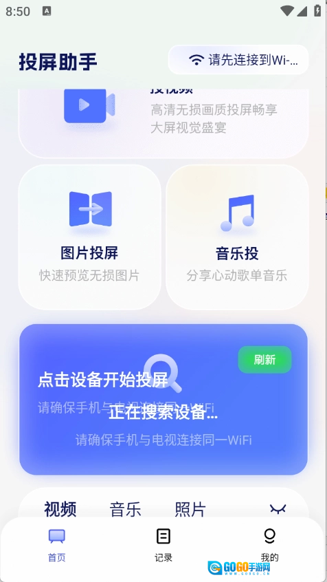 请确保手机和投屏电视处于同一个Wi-Fi下。