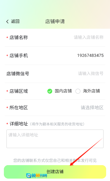 4. 填写店铺的详细信息并点击“创建店铺”按钮。